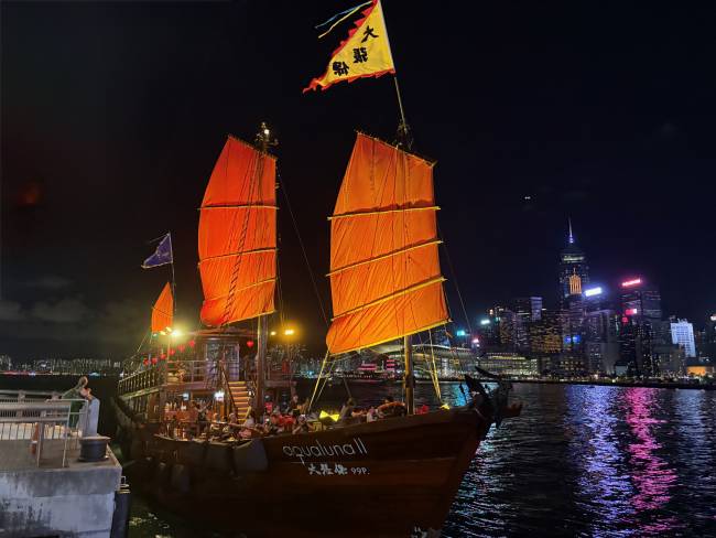 Take a boat trip around Victoria Harbour at night